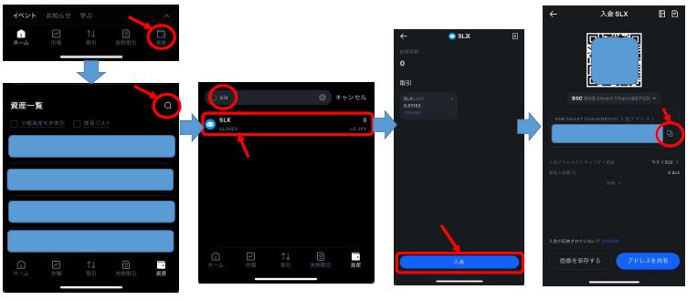 1.各ウォレットのBNBチェーンの$SLXをMEXCの$SLXのアドレス宛に送金する